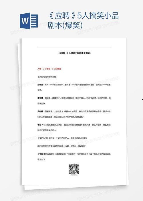 你知道吗?最近我在网上发现了一个超级搞笑的小品剧本,简直让人笑到肚子疼!这个剧本是由8位女生共同创作和演绎的,每一个角色都个性鲜明,情节更是跌宕起伏,让人捧腹大笑。今天,就让我带你一起来揭秘这个让人笑到停不下来的小品剧本吧!
